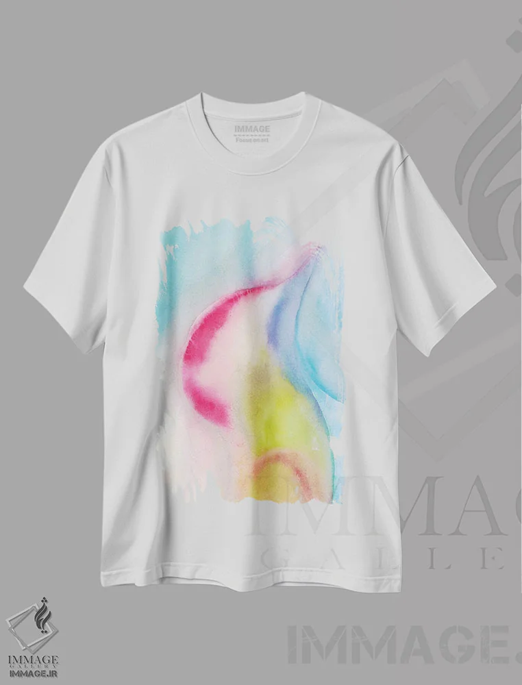 تیشرت سفید طرح دار شکوفه رنگین کمان، آبستره اثر ان شیپ | فروشگاه ایماژ تیشرت طرح دار شکوفه رنگین کمان اثر ان شیپ