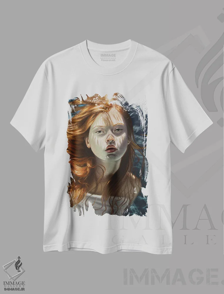 تیشرت سفید طرح دار دختر مو قرمز زیر آب، هنر فاخر معاصر اثر اینا مدودوا | فروشگاه ایماژ تیشرت طرح دار دختر مو قرمز زیر آب اثر اینا مدودوا