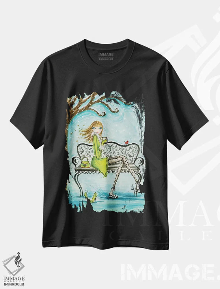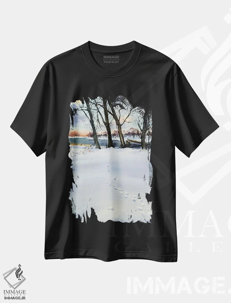 تیشرت مشکی طرح دار داستان زمستانی، تزئینی اثر هالینا کولگا | فروشگاه ایماژ تیشرت طرح دار داستان زمستانی اثر هالینا کولگا