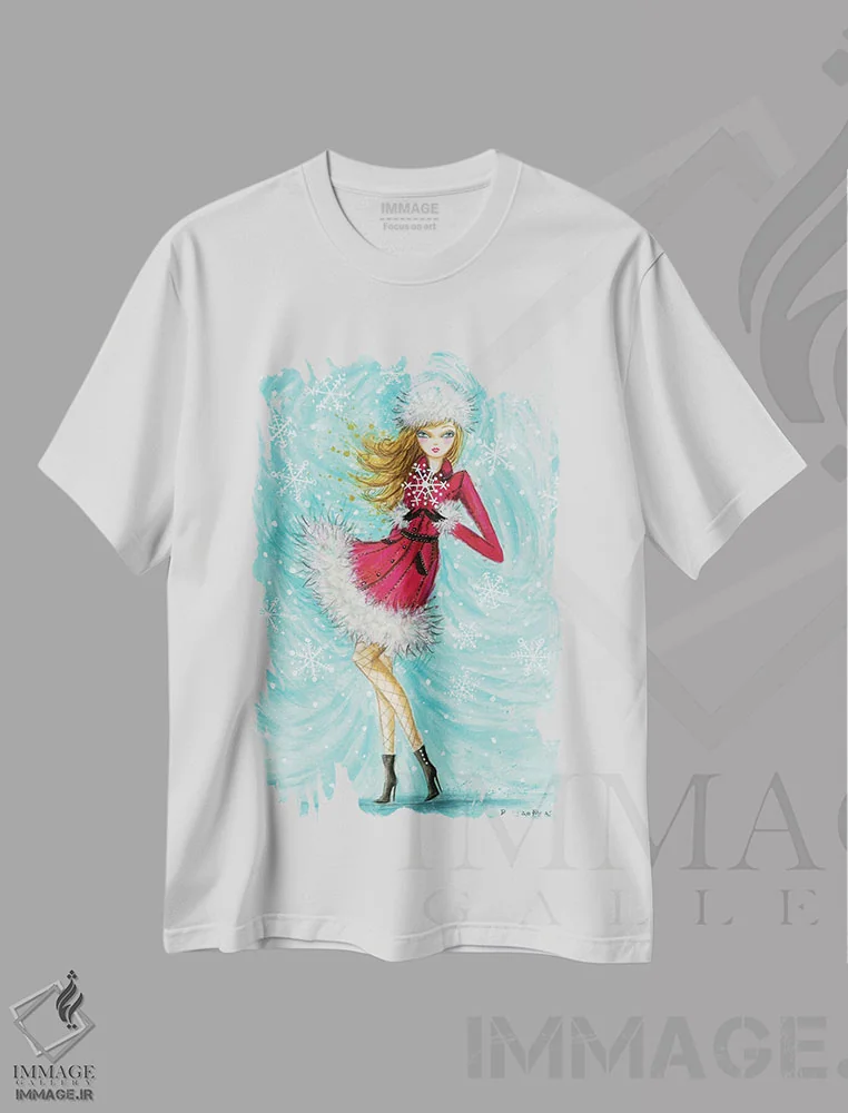 تیشرت سفید طرح دار حلقه یخی کریسمس، هنر فاخر معاصر اثر کاترینا بورتسووا | فروشگاه ایماژ تیشرت طرح دار حلقه یخی کریسمس اثر کاترینا بورتسووا