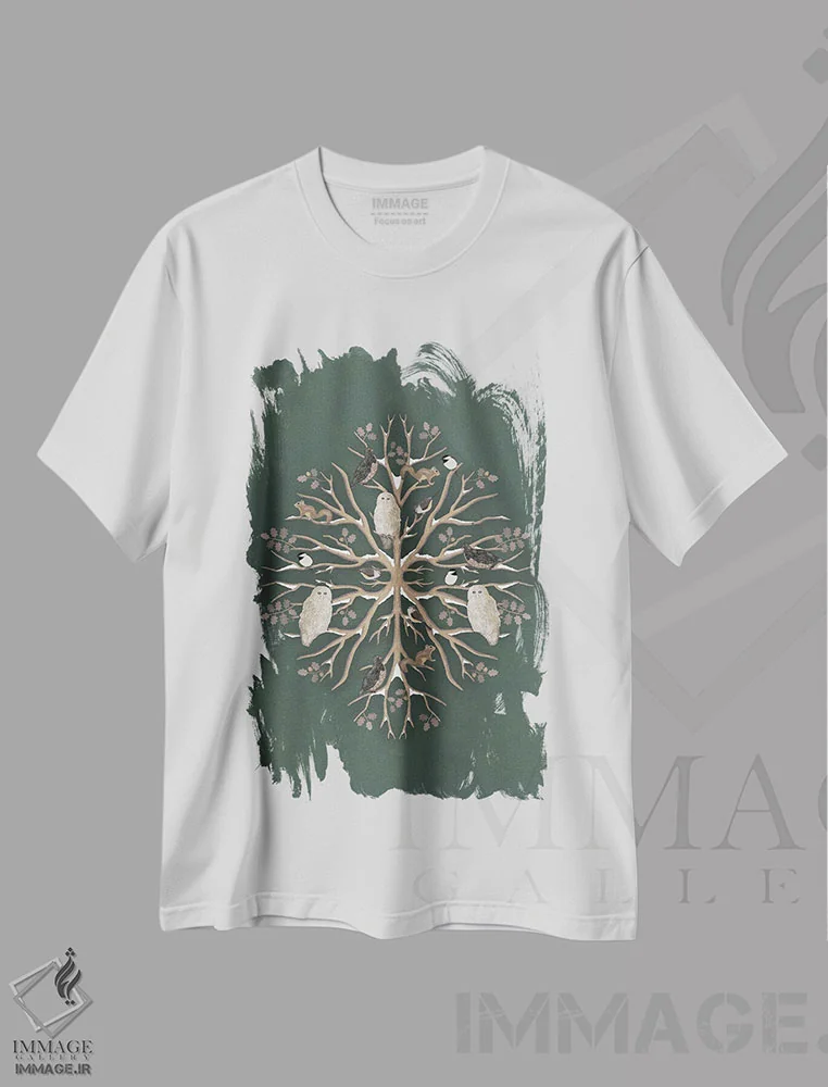 تیشرت سفید طرح دار "جنگل زمستانی باشکوه ۲"، دکور تعطیلات اثر لوییز آلن | فروشگاه ایماژ تیشرت طرح دار "جنگل زمستانی باشکوه " اثر لوییز آلن