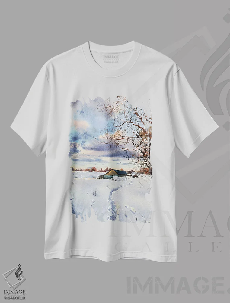 تیشرت سفید طرح دار سکوت زمستان، هنر دیجیتال اثر بریجت واث | فروشگاه ایماژ تیشرت طرح دار سکوت زمستان اثر بریجت واث
