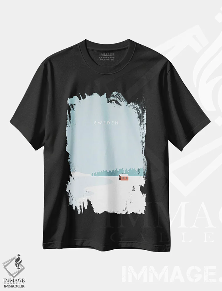 تیشرت مشکی طرح دار زمستان سوئد، تزئینی اثر کاتینکا رینکه | فروشگاه ایماژ تیشرت طرح دار زمستان سوئد اثر کاتینکا رینکه