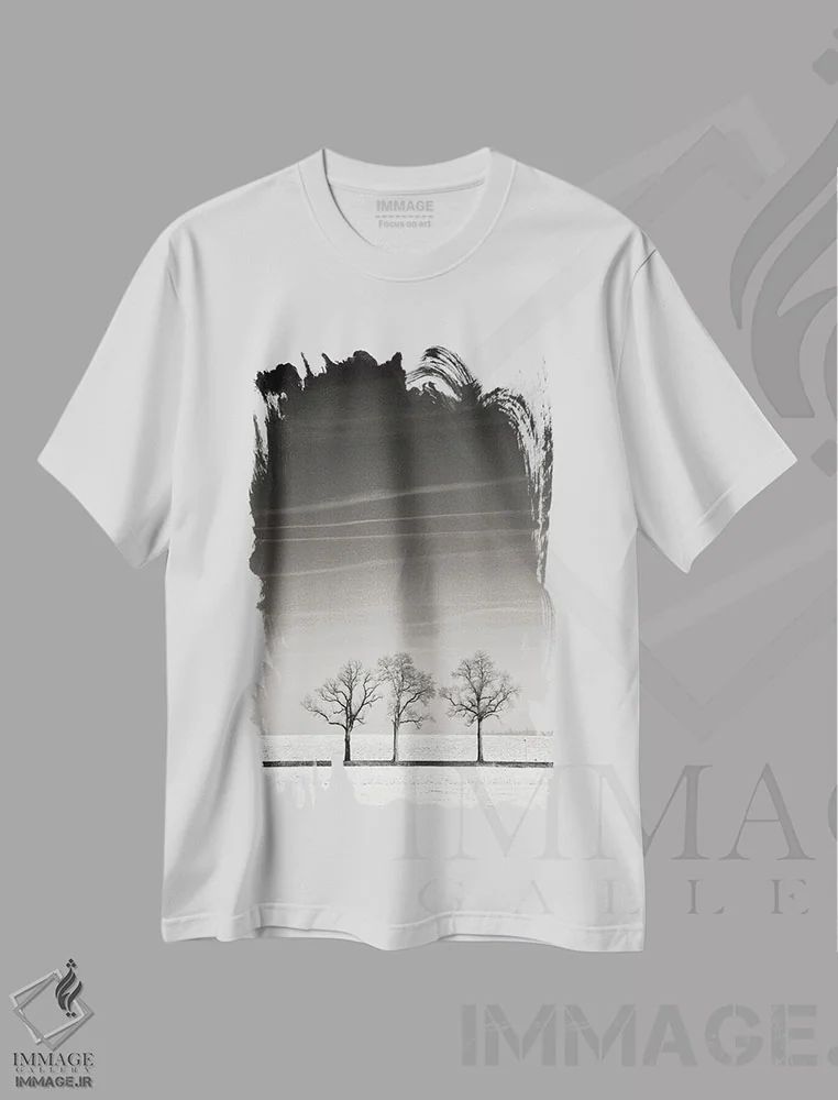 تیشرت سفید طرح دار رد پا در برف I، هنر فاخر معاصر اثر هوم لایک آرت | فروشگاه ایماژ تیشرت طرح دار رد پا در برف I اثر هوم لایک آرت