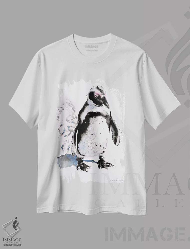 تیشرت سفید طرح دار ردپای پنگوئن، دکور معاصر اثر سو بنگ لیم | فروشگاه ایماژ تیشرت طرح دار ردپای پنگوئن اثر سو بنگ لیم