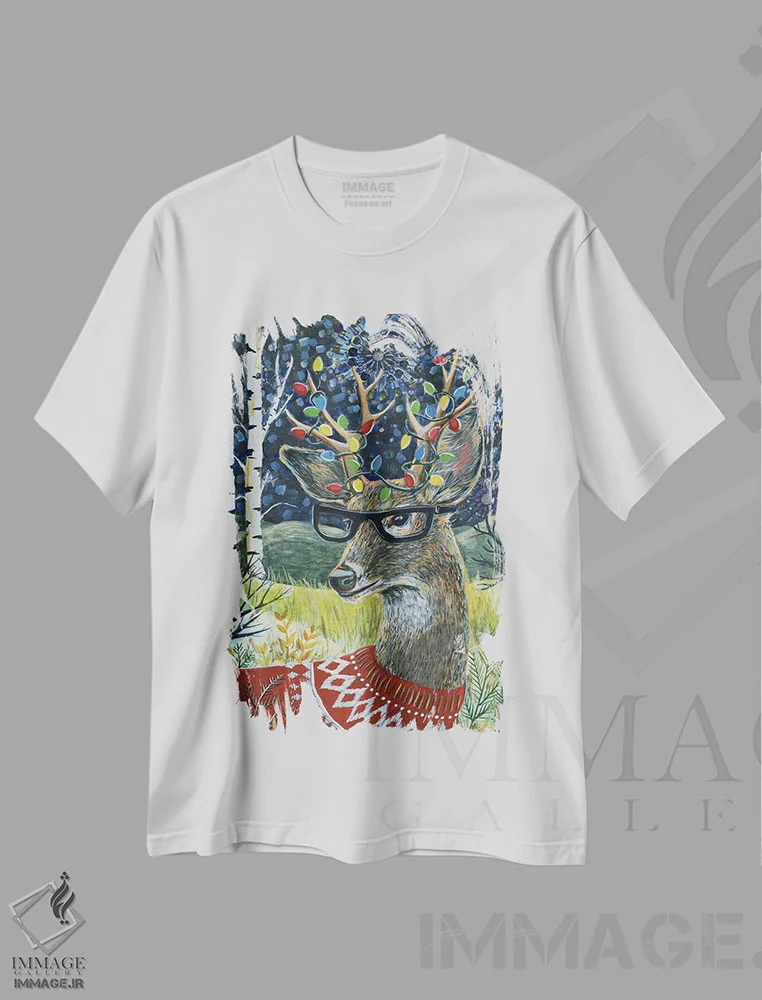 تیشرت سفید طرح دار شلوغی تعطیلات، حیوانات کریسمسی اثر جانا واشتی | فروشگاه ایماژ تیشرت طرح دار شلوغی تعطیلات اثر جانا واشتی