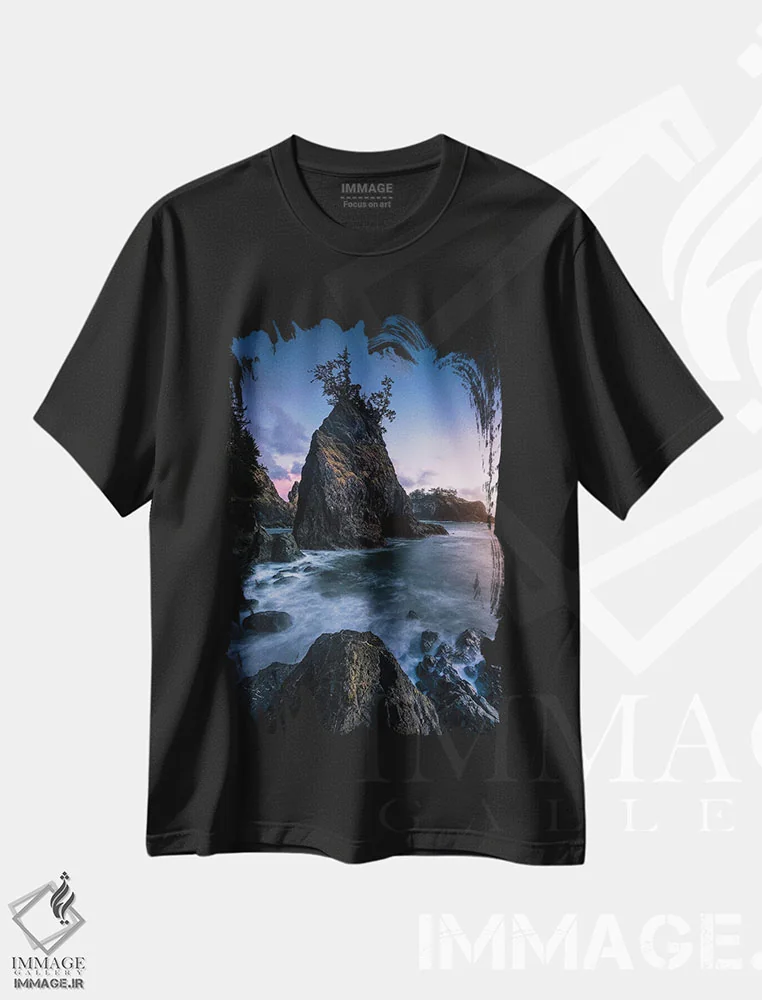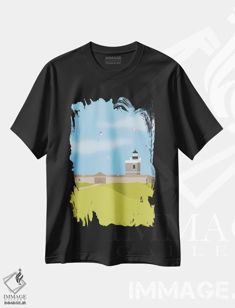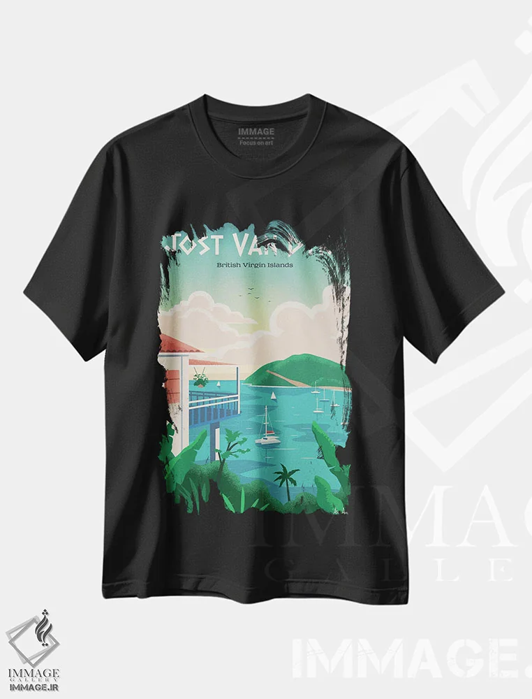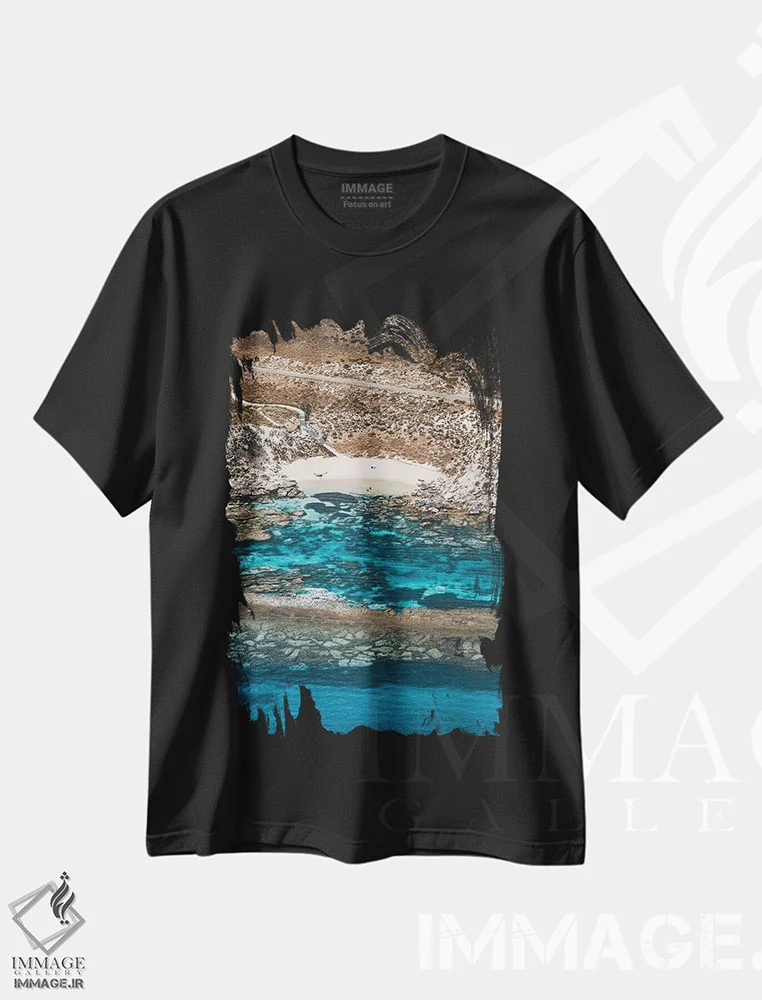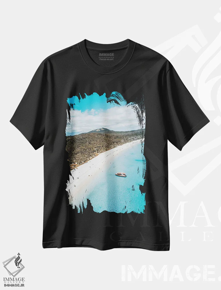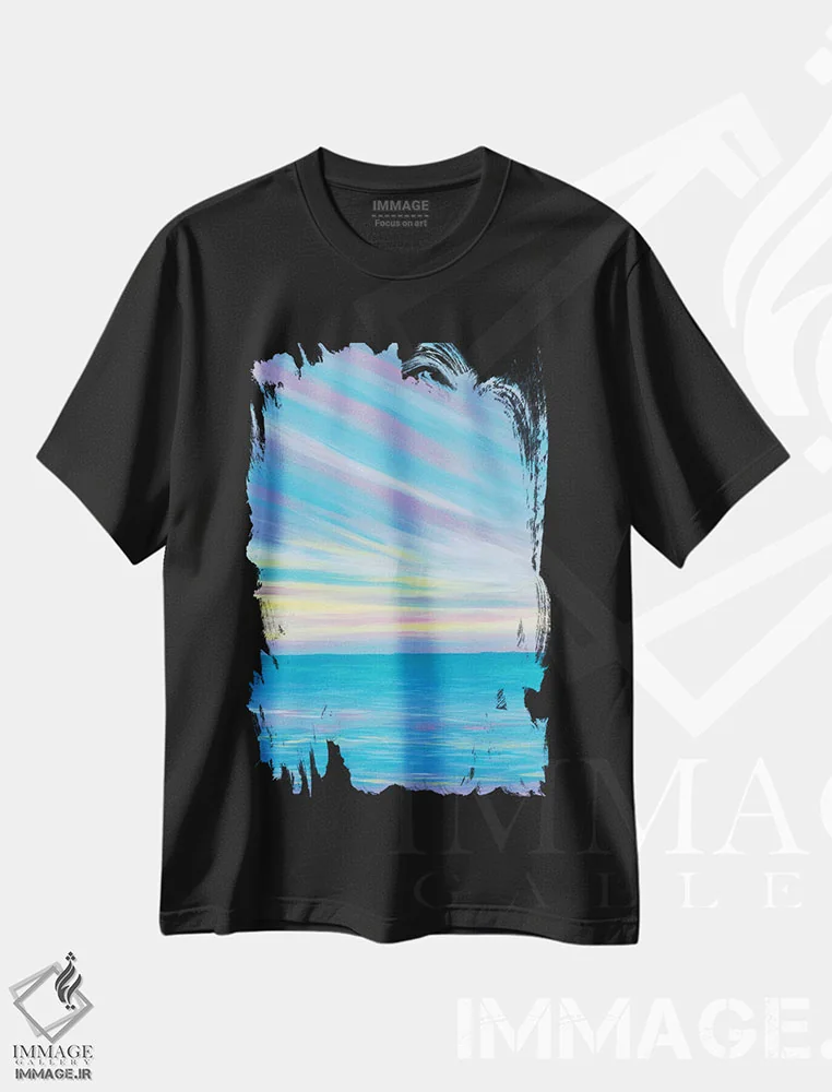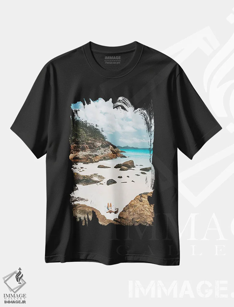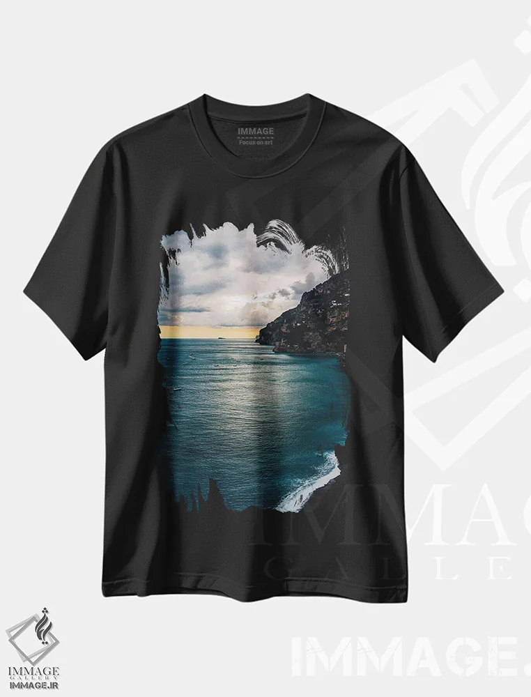 تیشرت مشکی طرح دار ساحلی اثر النا شرایبمن | فروشگاه ایماژ تیشرت طرح دار ساحلی اثر النا شرایبمن