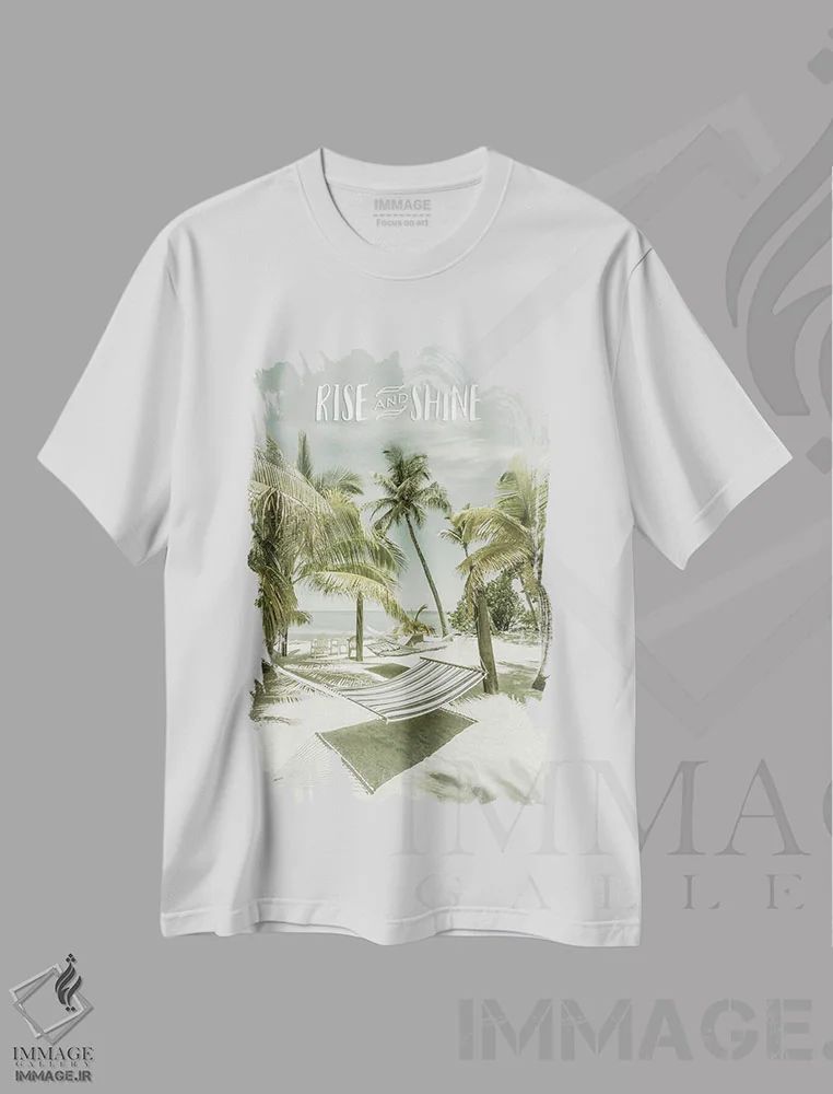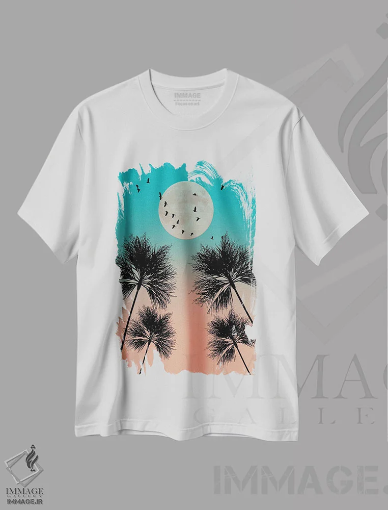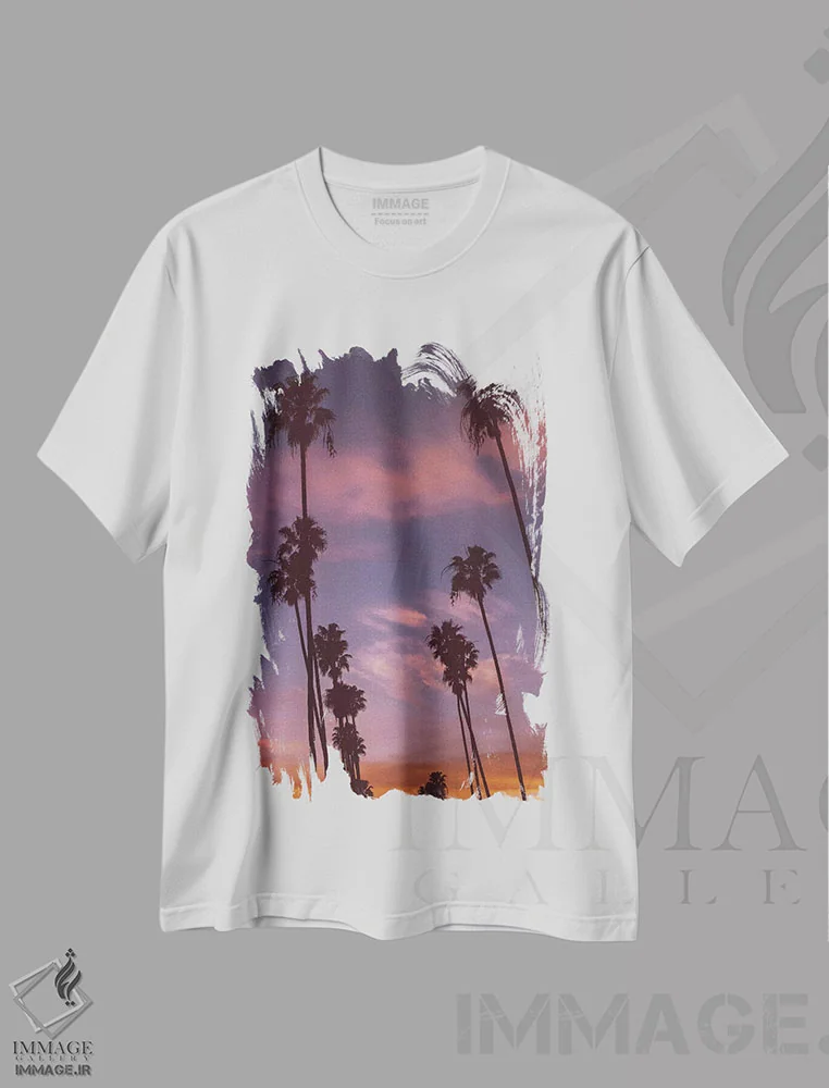 تیشرت سفید طرح دار – تیشرت طبیعت ,تابستانی با نخل ها اثر ملانی ویولا فروشگاه ایماژ تیشرت طرح طبیعت ,تابستانی با نخل ها اثر ملانی ویولا