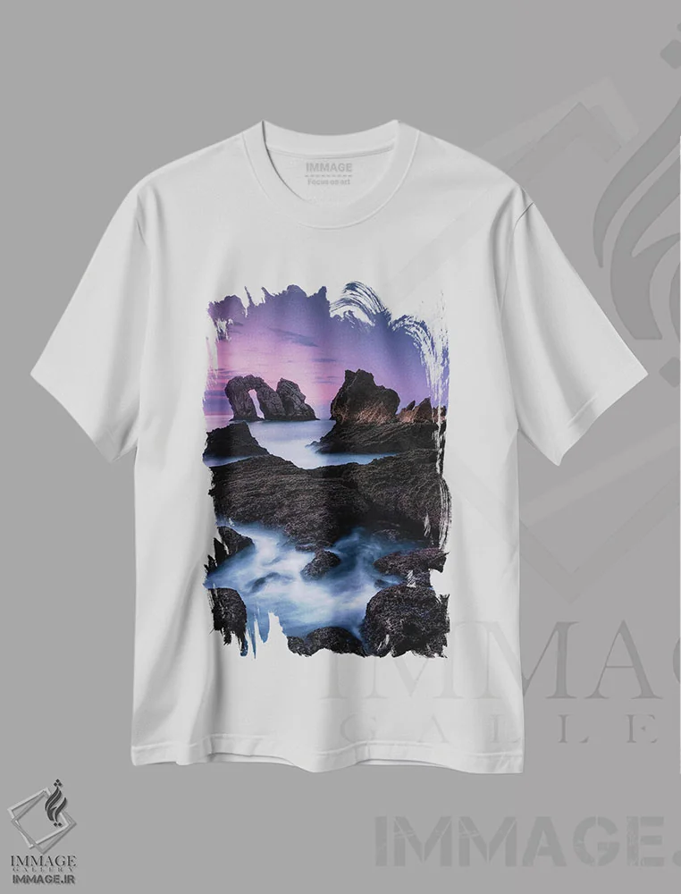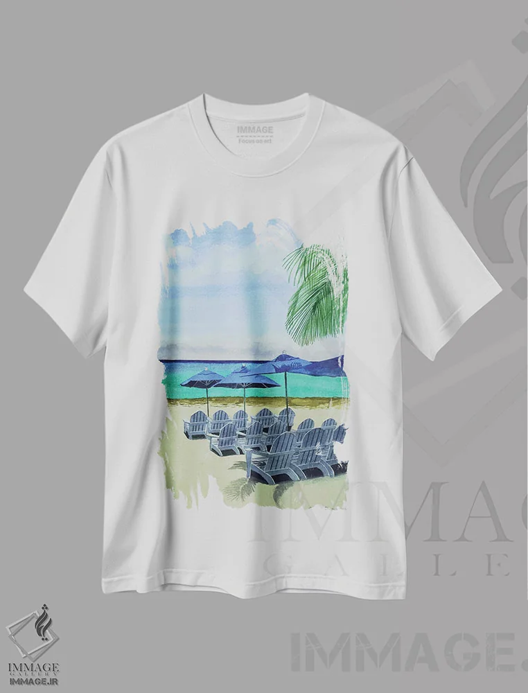 تیشرت سفید طرح دار – تیشرت ساحلی ,بلند شو و بدرخش | منظره ساحلی اثر ملانی ویولا فروشگاه ایماژ تیشرت طرح ساحلی ,بلند شو و بدرخش | منظره ساحلی اثر ملانی ویولا