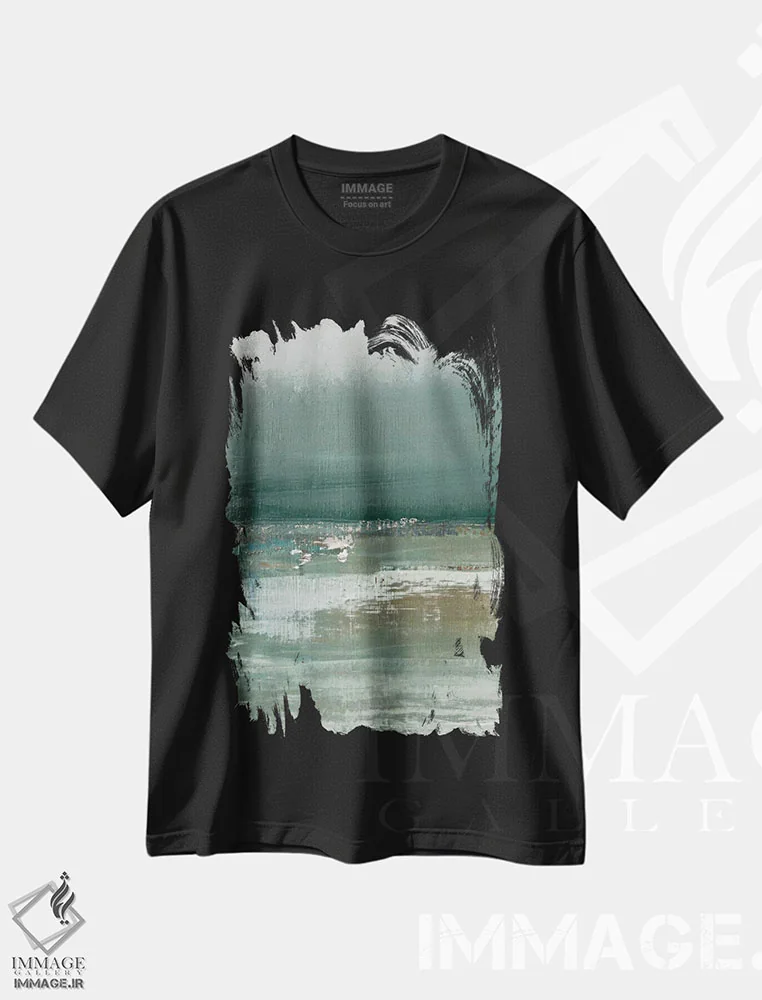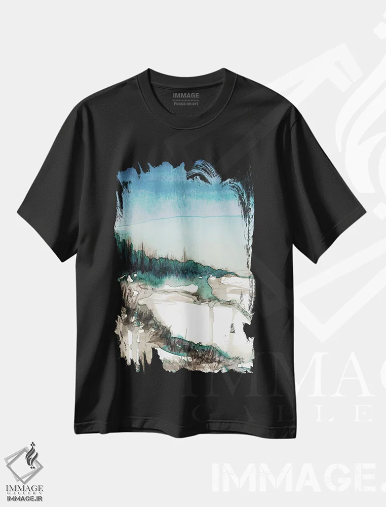 تیشرت مشکی طرح دار خط ساحلی I سبز آبی، آبستره اثر جولیا دی سانو | فروشگاه ایماژ تیشرت طرح دار خط ساحلی I سبز آبی اثر جولیا دی سانو