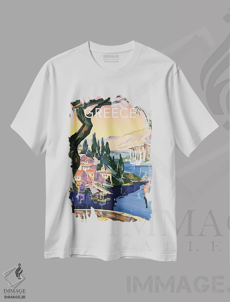 تیشرت سفید طرح دار سفر به یونان، هنر دیجیتال اثر سَتردی ایونینگ پُست | فروشگاه ایماژ تیشرت طرح دار سفر به یونان اثر سَتردی ایونینگ پُست