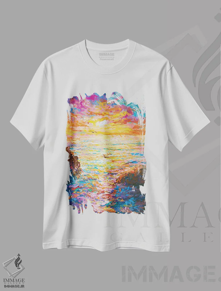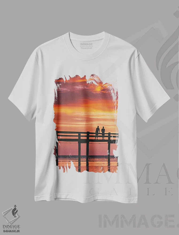 تیشرت سفید طرح دار غروب صورتی، تزئینی اثر ادسون راموس | فروشگاه ایماژ تیشرت طرح دار غروب صورتی اثر ادسون راموس