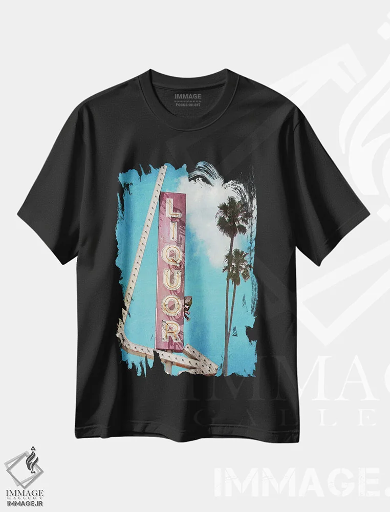 تیشرت مشکی طرح دار مشروب الکلی، تزئینی اثر هانی مون هتل | فروشگاه ایماژ تیشرت طرح دار مشروب الکلی اثر هانی مون هتل