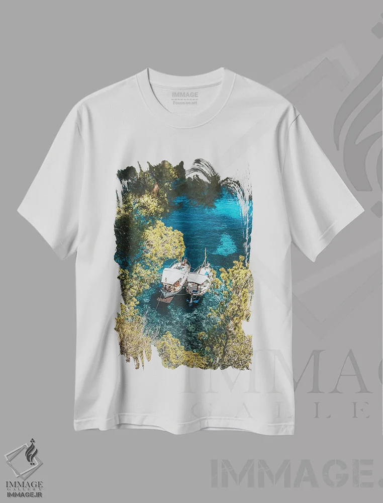 تیشرت سفید طرح دار شناور، عکاسی هوایی اثر آندریا کاروزو | فروشگاه ایماژ تیشرت طرح دار شناور اثر آندریا کاروزو