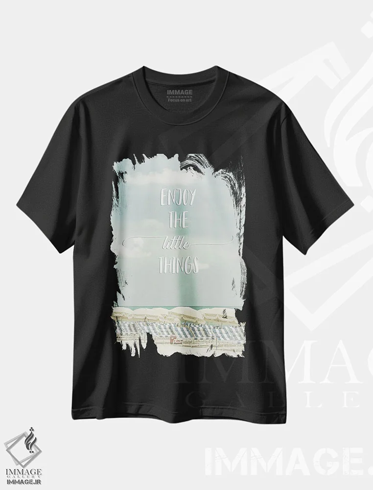 تیشرت مشکی طرح دار – تیشرت ساحلی ,از چیزهای کوچک لذت ببر | منظره ساحلی اثر ملانی ویولا فروشگاه ایماژ تیشرت طرح ساحلی ,از چیزهای کوچک لذت ببر | منظره ساحلی اثر ملانی ویولا