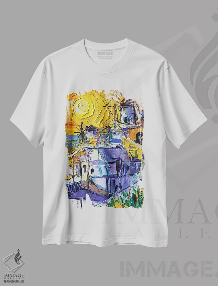 تیشرت سفید طرح دار نقطهٔ بهشت، دکور معاصر اثر ایدیااستورم استودیوز | فروشگاه ایماژ تیشرت طرح دار نقطهٔ بهشت اثر ایدیااستورم استودیوز