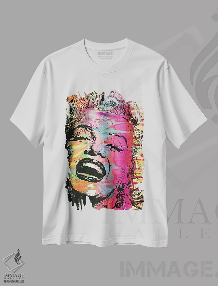 تیشرت سفید طرح دار مرلین مونرو ۳، هنر فاخر معاصر اثر لئون دوونیس | فروشگاه ایماژ تیشرت طرح دار مرلین مونرو اثر لئون دوونیس