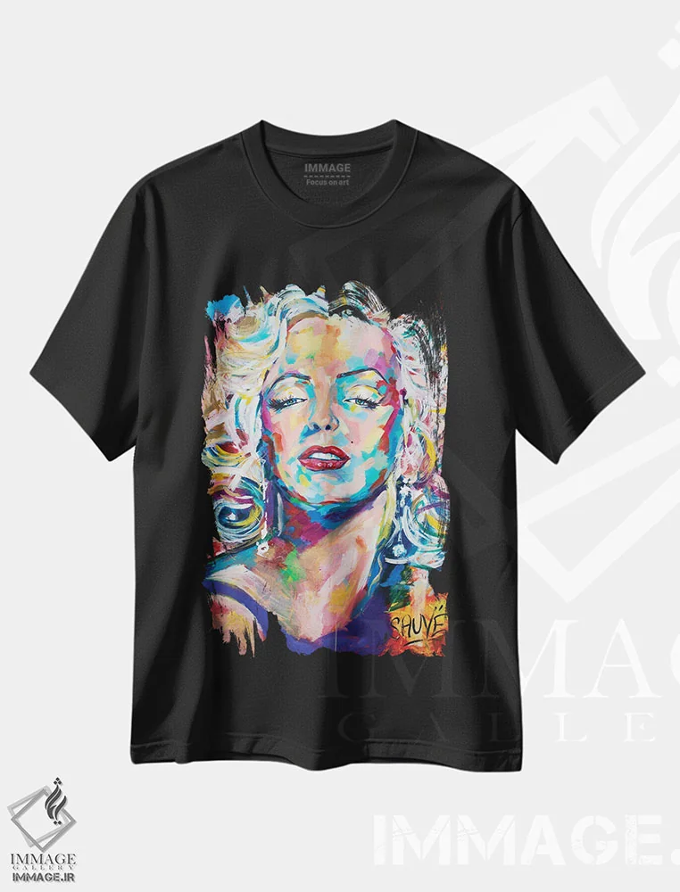 تیشرت مشکی طرح دار مرلین مونرو، هنر فاخر معاصر اثر جیسون سوو | فروشگاه ایماژ تیشرت طرح دار مرلین مونرو اثر جیسون سوو
