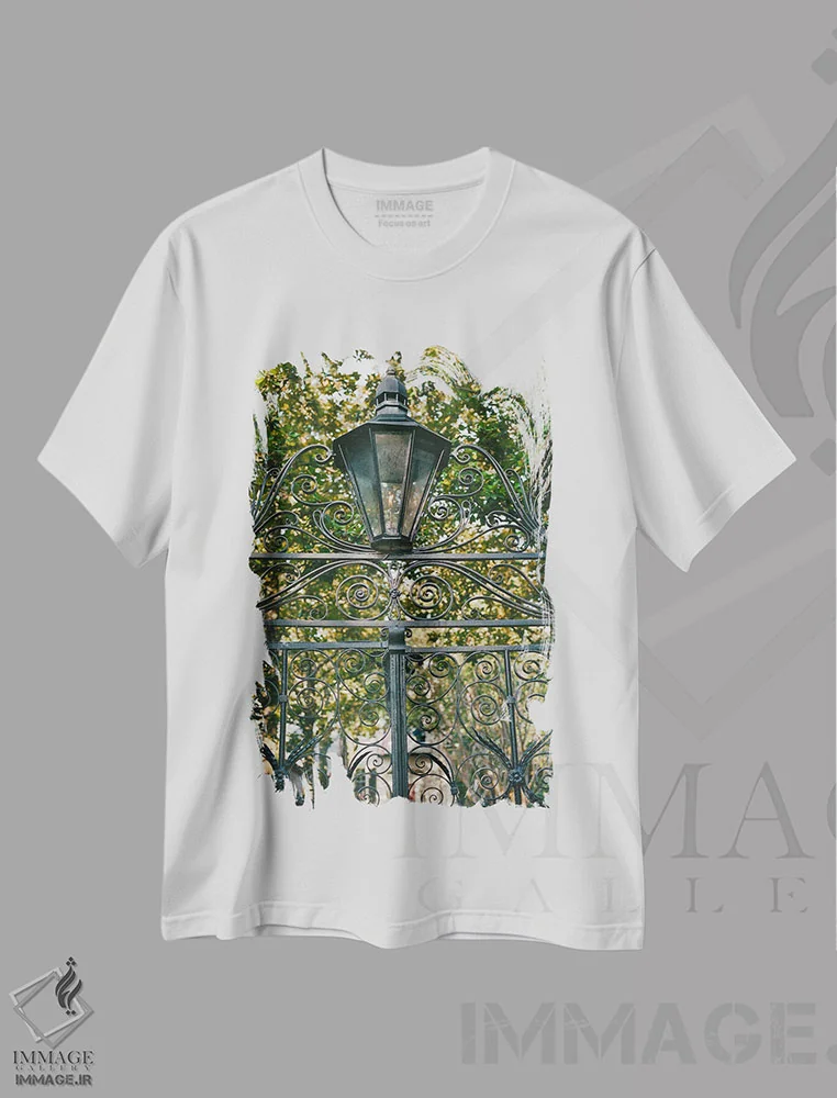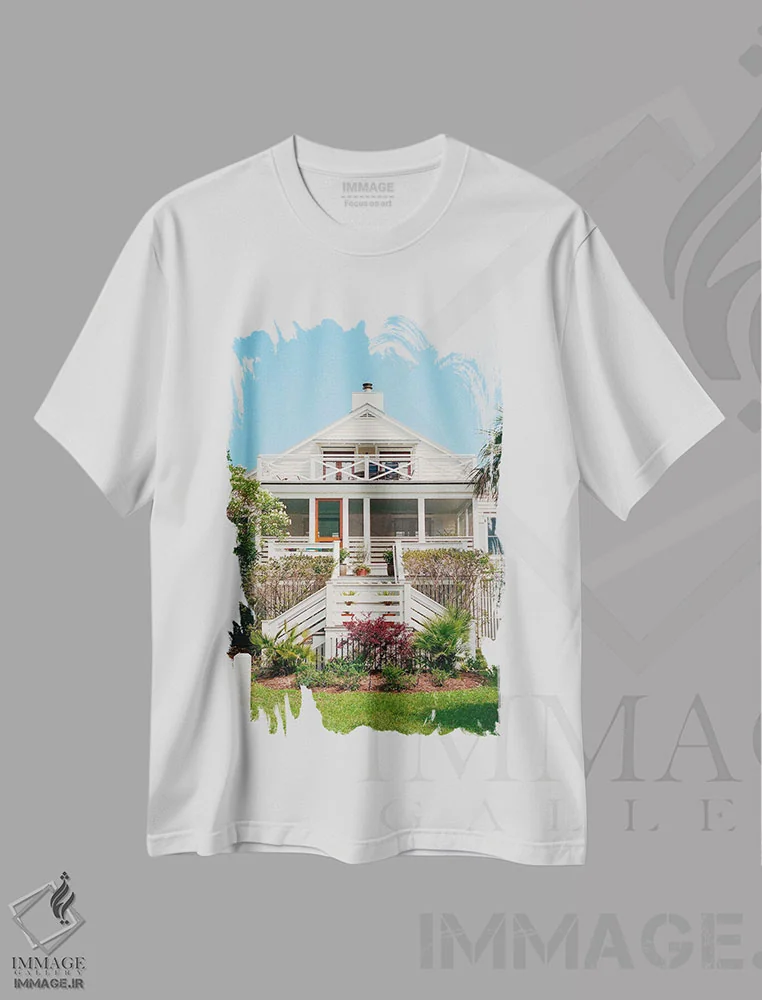 تیشرت سفید طرح دار ساختمان سبز، مدیوم اثر گیلیارد برسسان | فروشگاه ایماژ تیشرت طرح دار ساختمان سبز اثر گیلیارد برسسان