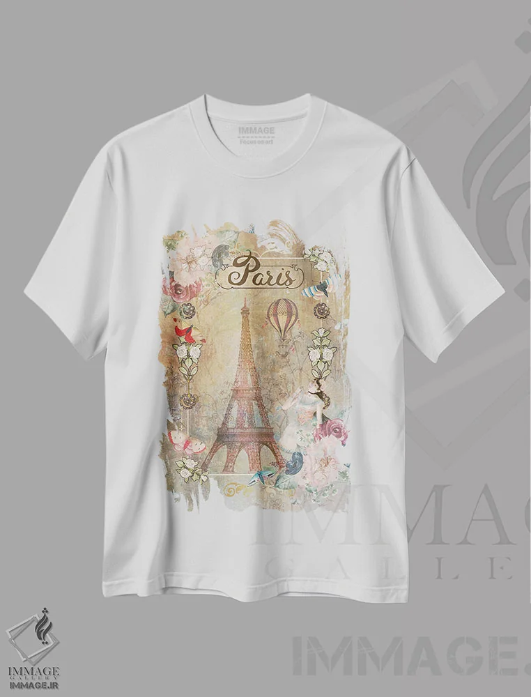 تیشرت سفید طرح دار از پاریس با عشق، تزئینی اثر کلودیا مک کینی | فروشگاه ایماژ تیشرت طرح دار از پاریس با عشق اثر کلودیا مک کینی