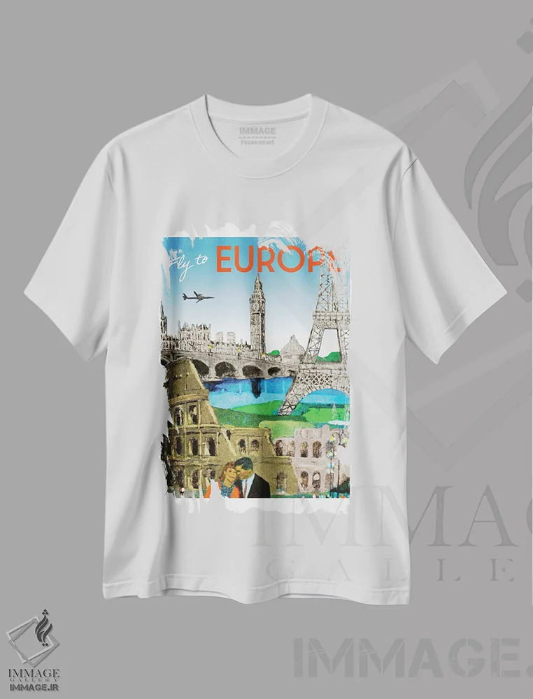 تیشرت سفید طرح دار سفر به اروپا، هنر دیجیتال اثر سَتردی ایونینگ پُست | فروشگاه ایماژ تیشرت طرح دار سفر به اروپا اثر سَتردی ایونینگ پُست