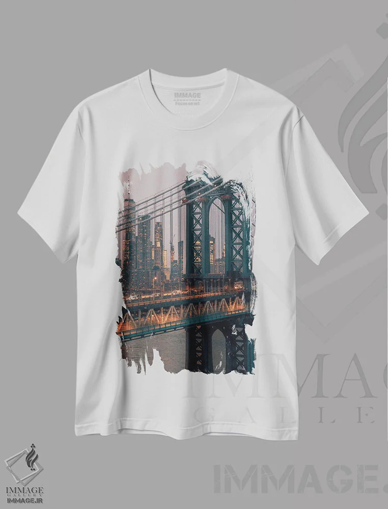 تیشرت سفید طرح دار پل منهتن با نمای آسمان خراش های منهتن، مدیوم اثر دیلان واکر | فروشگاه ایماژ تیشرت طرح دار پل منهتن با نمای آسمان خراش های منهتن اثر دیلان واکر
