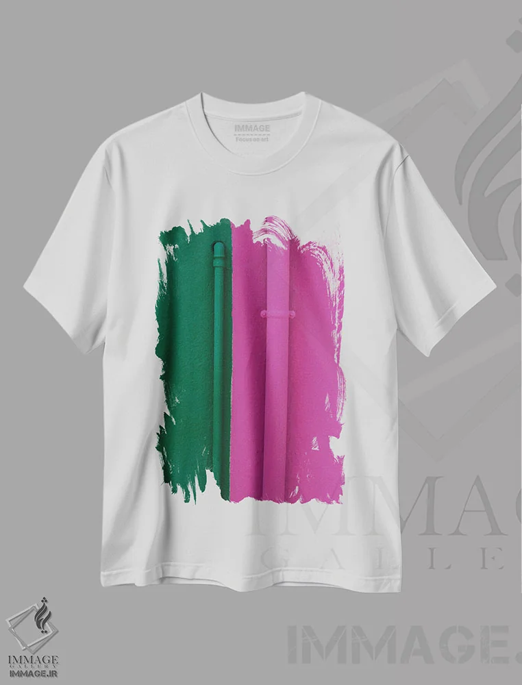 تیشرت سفید طرح دار سبز صورتی، عکاسی ترکیبی اثر گیلیارد برسسان | فروشگاه ایماژ تیشرت طرح دار سبز صورتی اثر گیلیارد برسسان