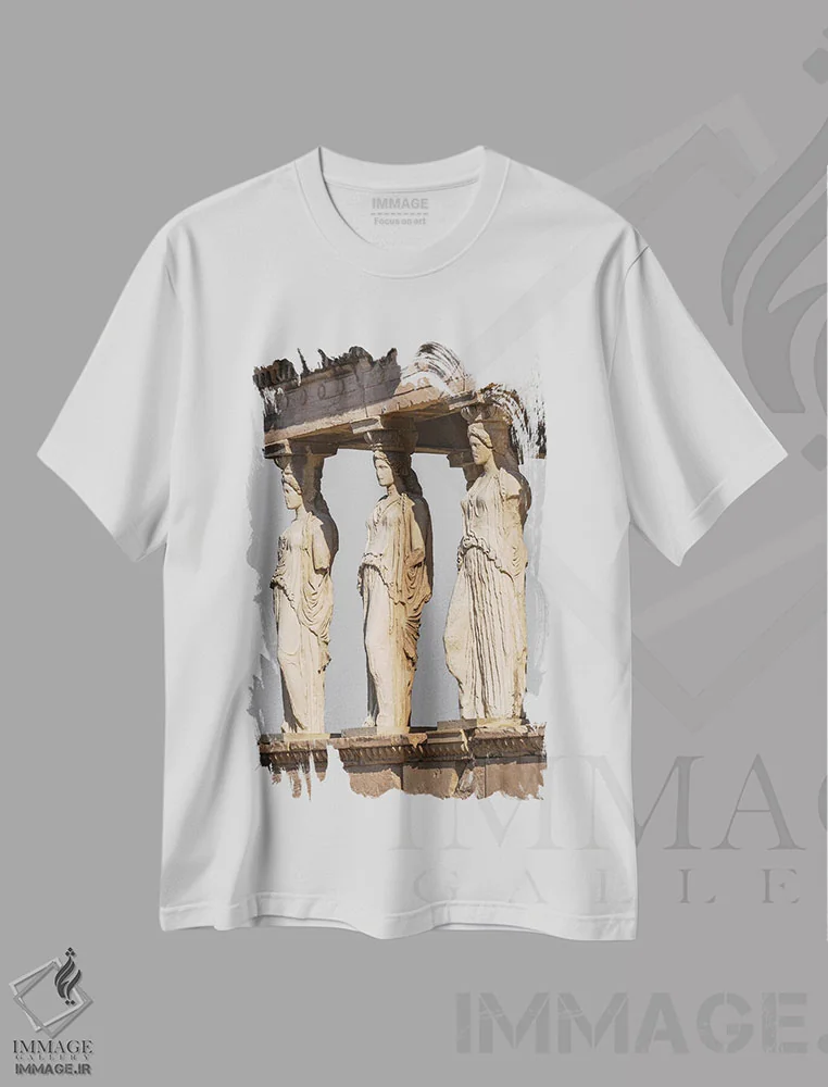 تیشرت سفید طرح دار الهه آتنا، مدیوم اثر گیلیارد برسسان | فروشگاه ایماژ تیشرت طرح دار الهه آتنا اثر گیلیارد برسسان