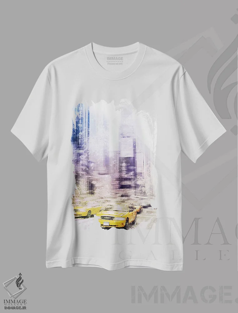 تیشرت سفید طرح دار – تیشرت گرافیکی شهری ,تایمز اسکوئر اثر ملانی ویولا فروشگاه ایماژ تیشرت طرح گرافیکی شهری ,تایمز اسکوئر اثر ملانی ویولا