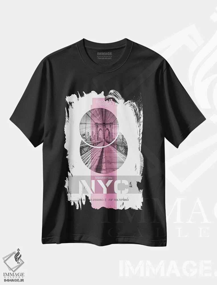 تیشرت مشکی طرح دار – تیشرت شهری ,پوستر آرت پل بروکلین نیویورک | صورتی اثر ملانی ویولا فروشگاه ایماژ تیشرت طرح شهری ,پوستر آرت پل بروکلین نیویورک | صورتی اثر ملانی ویولا