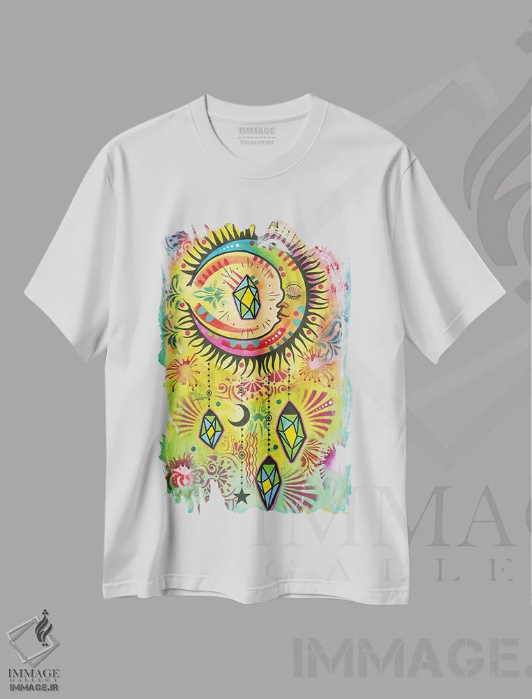 تیشرت سفید طرح دار تعادل کیهانی ۲، دکور معاصر اثر دین روسو | فروشگاه ایماژ تیشرت طرح دار تعادل کیهانی اثر دین روسو