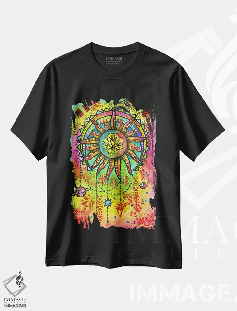 تیشرت مشکی طرح دار یانترا کالی، دکور آسیایی اثر دیانا تیتووا | فروشگاه ایماژ تیشرت طرح دار یانترا کالی اثر دیانا تیتووا