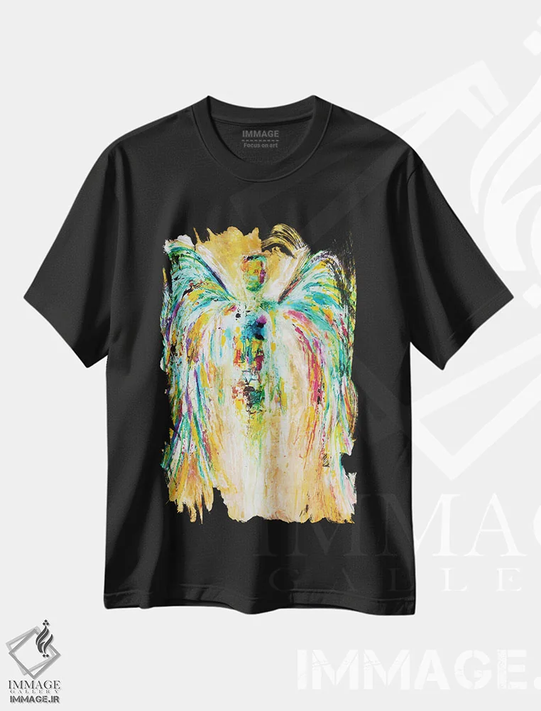 تیشرت مشکی طرح دار فرشته من، دکور معاصر اثر کارن تارلتون | فروشگاه ایماژ تیشرت طرح دار فرشته من اثر کارن تارلتون