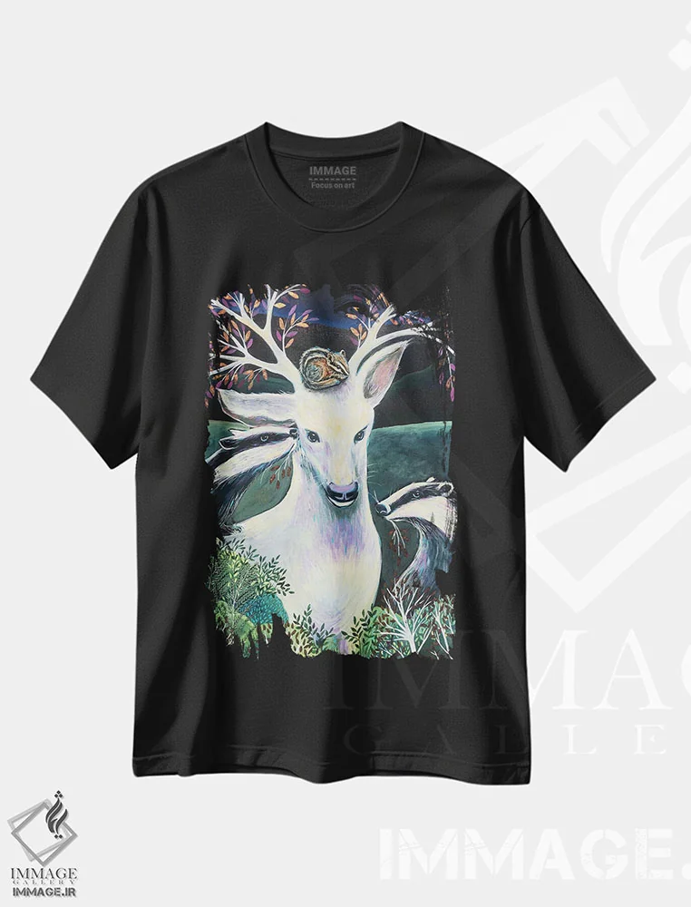 تیشرت مشکی طرح دار – تیشرت حیوانات ,مادر گوزن اثر لینه آ توبیاس فروشگاه ایماژ تیشرت طرح حیوانات ,مادر گوزن اثر لینه آ توبیاس