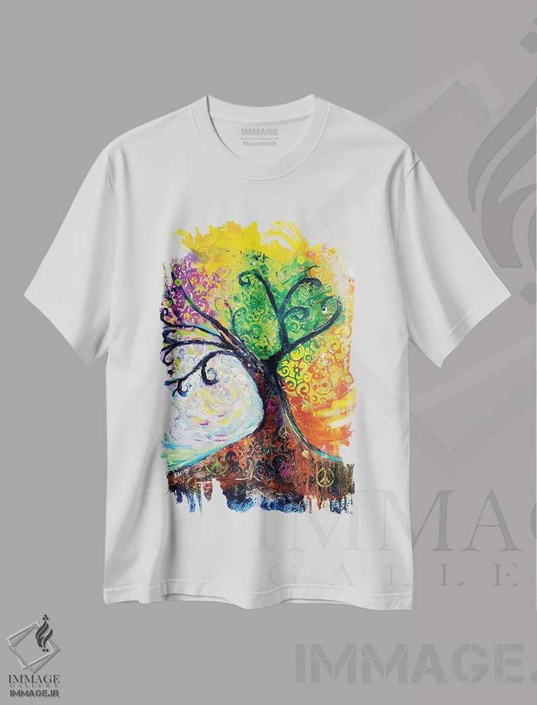 تیشرت سفید طرح دار – تیشرت طبیعت ,درخت زندگی بانیان اثر میشل پالور فلدمن فروشگاه ایماژ تیشرت طرح طبیعت ,درخت زندگی بانیان اثر میشل پالور فلدمن