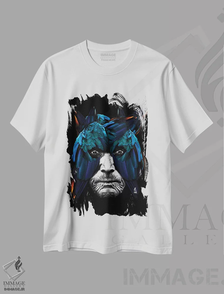 تیشرت سفید طرح دار انسان-پرنده آرارا، هنر دیجیتال اثر دانیلو د آلکساندریا | فروشگاه ایماژ تیشرت طرح دار انسان-پرنده آرارا اثر دانیلو د آلکساندریا