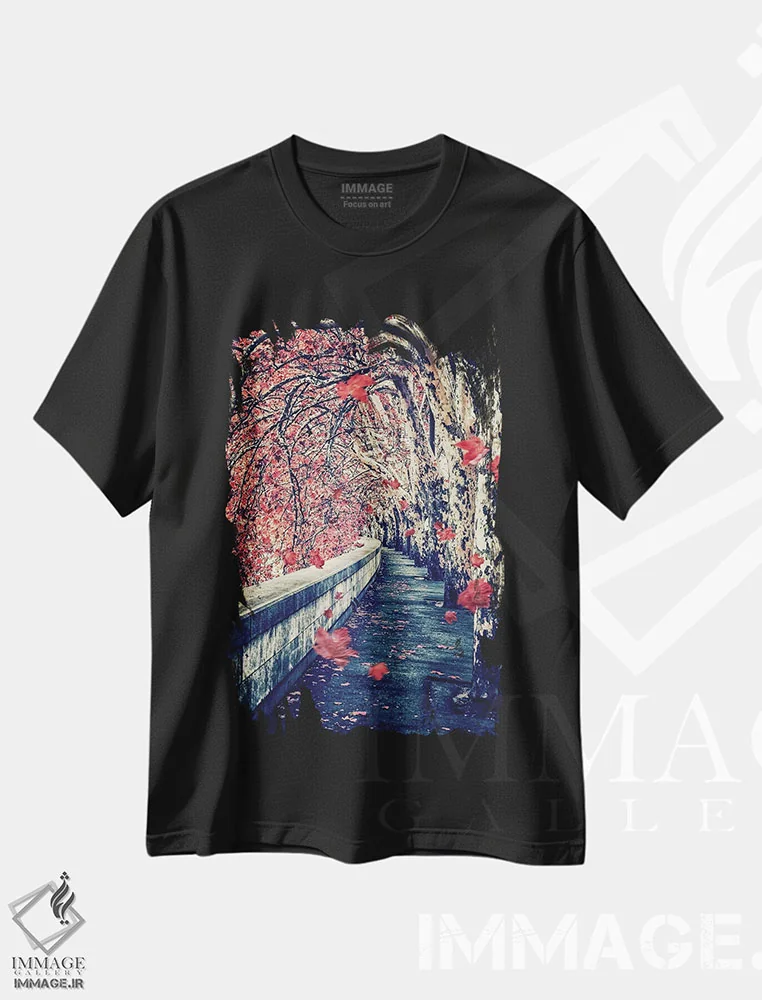 تیشرت مشکی طرح دار برگ های ریخته، مدیوم اثر مانجیک پیکچرز | فروشگاه ایماژ تیشرت طرح دار برگ های ریخته اثر مانجیک پیکچرز