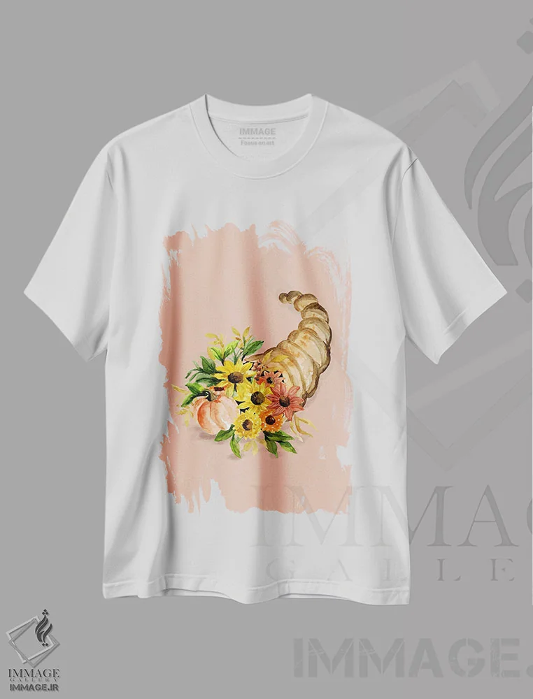 تیشرت سفید طرح دار شاخ فراوانی برداشت، مدیوم اثر کیت الدرایدج | فروشگاه ایماژ تیشرت طرح دار شاخ فراوانی برداشت اثر کیت الدرایدج