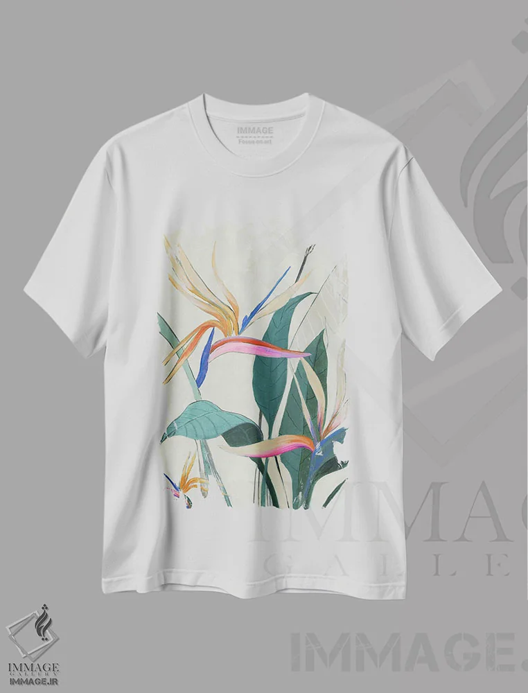 تیشرت سفید طرح دار شکوه گرمسیری، دکور معاصر اثر جیکوب کیو | فروشگاه ایماژ تیشرت طرح دار شکوه گرمسیری اثر جیکوب کیو
