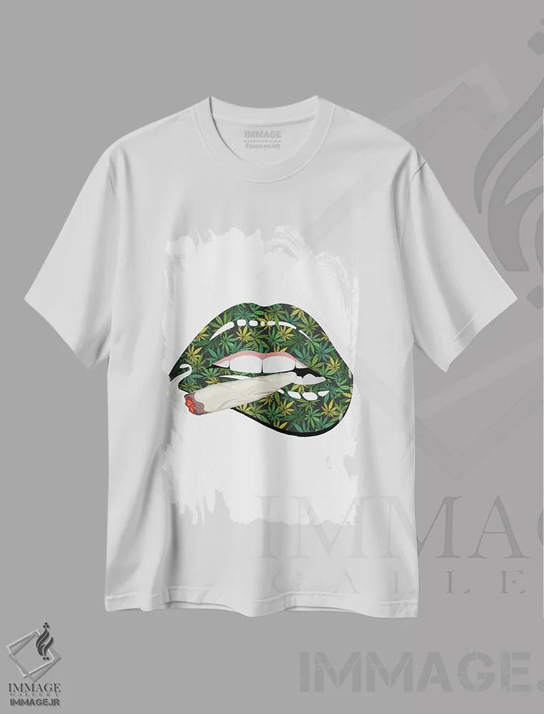 تیشرت سفید طرح دار لب های کانابیس، هنر دیجیتال اثر جولی شریبر | فروشگاه ایماژ تیشرت طرح دار لب های کانابیس اثر جولی شریبر