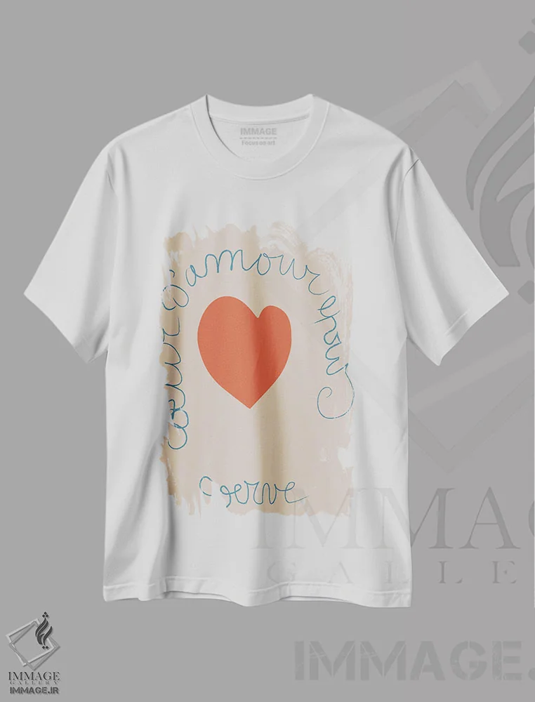 تیشرت سفید طرح دار گل قلبی، تزئینی اثر هانا بایزنگ | فروشگاه ایماژ تیشرت طرح دار گل قلبی اثر هانا بایزنگ