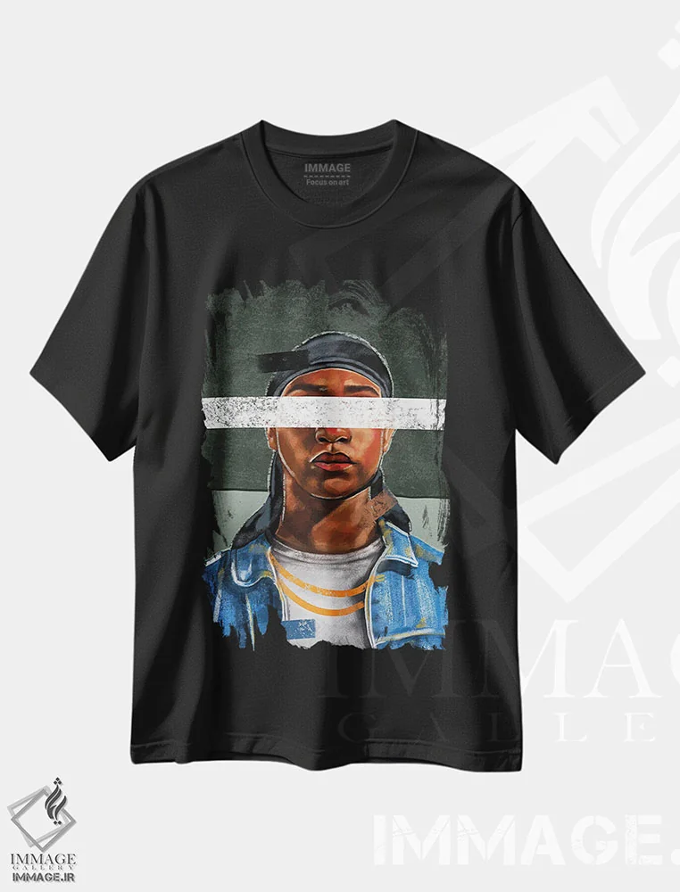 تیشرت مشکی طرح دار دورگ بدون بانت، هنر آمریکایی آفریقایی تبار اثر دومونیک براون | فروشگاه ایماژ