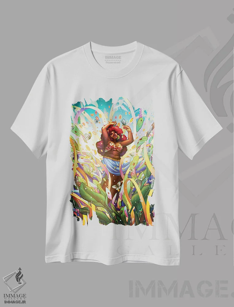 تیشرت سفید طرح دار بی کران، بی همتا، هنر آمریکایی آفریقایی تبار اثر اجیوا ابنبه | فروشگاه ایماژ تیشرت طرح دار بی کران، بی همتا اثر اجیوا ابنبه