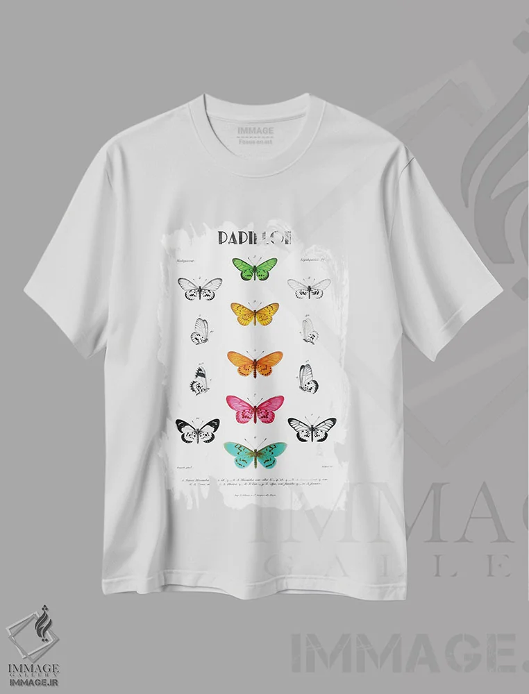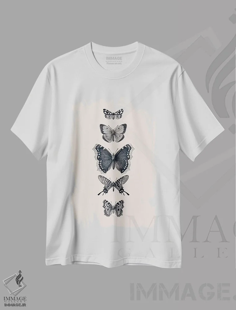 تیشرت سفید طرح دار – تیشرت پروانه ,شب پره های شبانه اثر میری اشت فروشگاه ایماژ تیشرت طرح پروانه ,شب پره های شبانه اثر میری اشت