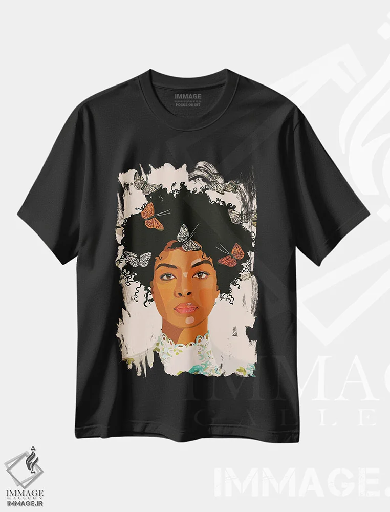 تیشرت مشکی طرح دار پروانه ها، هنر آمریکایی آفریقایی تبار اثر آرت پِی سی ئی | فروشگاه ایماژ تیشرت طرح دار پروانه ها اثر آرت پِی سی ئی