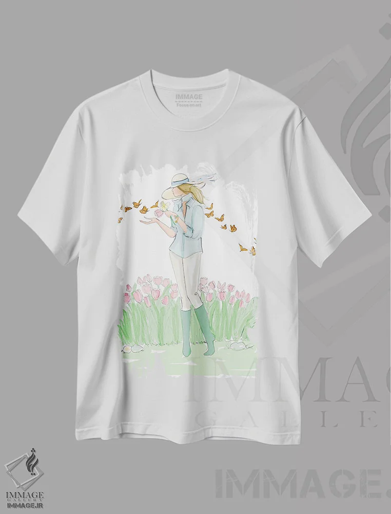 تیشرت سفید طرح دار پروانه ها، تزئینی اثر فانیتسا پترو | فروشگاه ایماژ تیشرت طرح دار پروانه ها اثر فانیتسا پترو