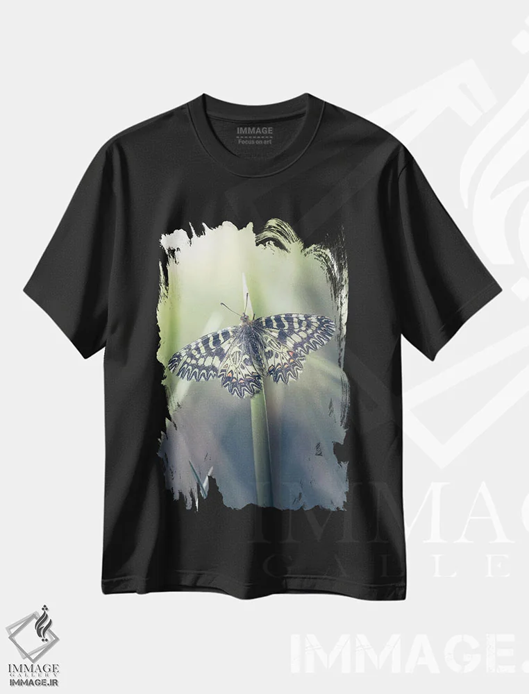 تیشرت مشکی طرح دار پروانه کمیاب، عکاسی ماکرو اثر جفرسون کاستلاری | فروشگاه ایماژ تیشرت طرح دار پروانه کمیاب اثر جفرسون کاستلاری