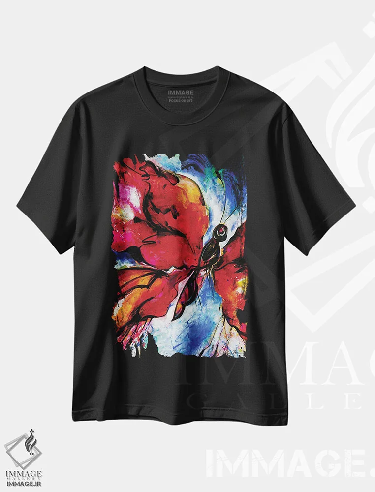 تیشرت مشکی طرح دار پروانه ها، دکور معاصر اثر کارن تارلتون | فروشگاه ایماژ تیشرت طرح دار پروانه ها اثر کارن تارلتون