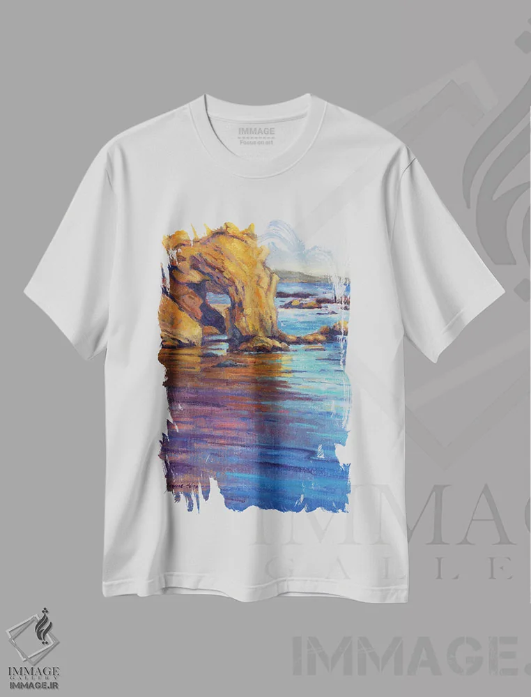 تیشرت سفید طرح دار کروز ساحلی ششم، دکور ساحلی اثر کانی کیم | فروشگاه ایماژ تیشرت طرح دار کروز ساحلی ششم اثر کانی کیم