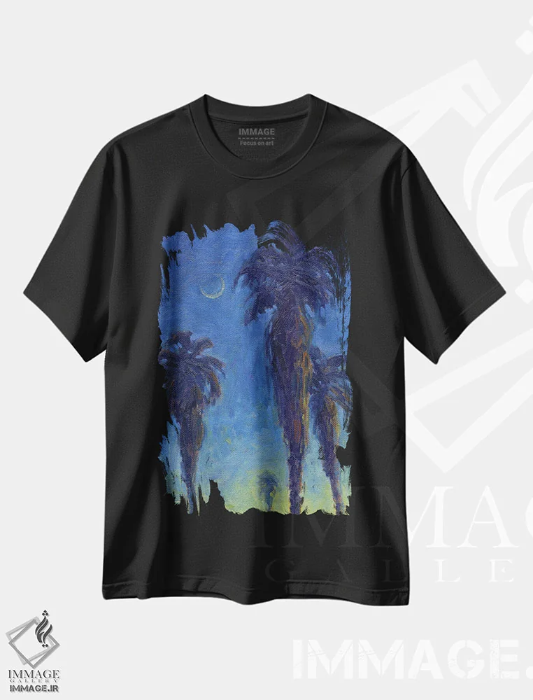 تیشرت مشکی طرح دار نخل های داغ تابستانی، دکور معاصر اثر کانی کیم | فروشگاه ایماژ تیشرت طرح دار نخل های داغ تابستانی اثر کانی کیم
